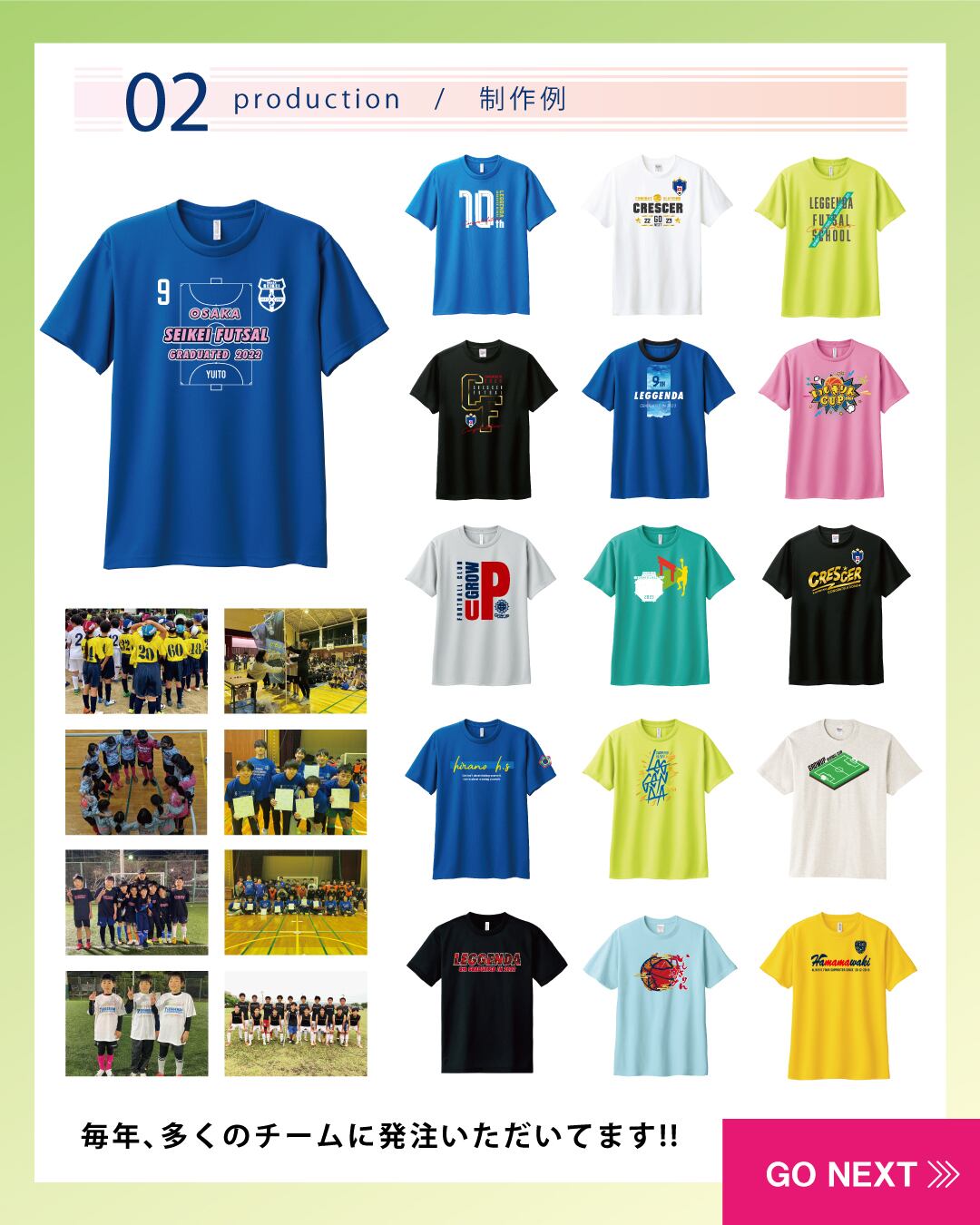 毎年、卒業・卒団するチームへの想いが、ずっと残るような物を作りたいと思ってデザインを制作しています!!皆さんのチームのシャツも制作させてください!!