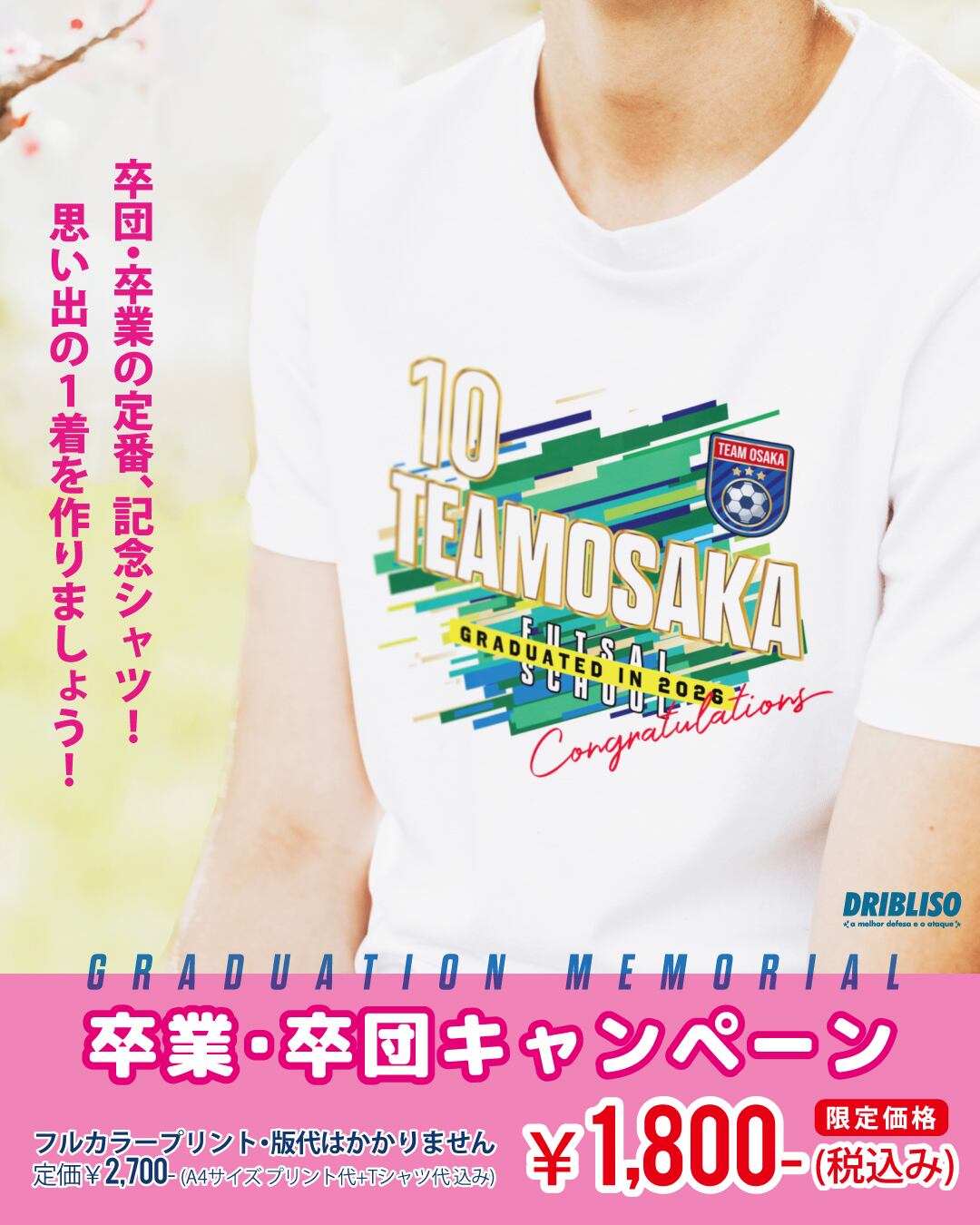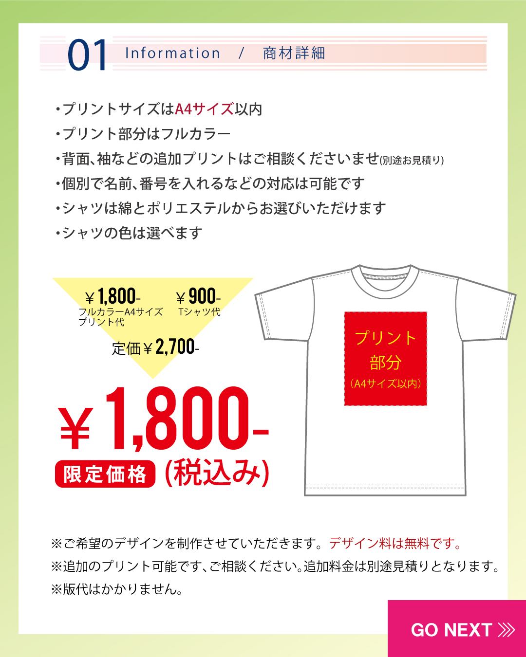 定価¥2,700- (A4サイズ プリント代+Tシャツ代 込み)のところを特別価格¥1,800-です!!